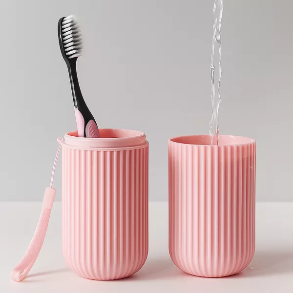 Der Halter verwandelt sich in einen praktischen Becher zum Ausspülen nach dem Zähneputzen. Damit wird die Körperpflege einfach und schnell, auch unterwegs.