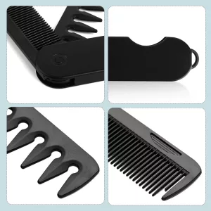 Passt problemlos in meine Brieftasche und sticht nicht. Es richtet meine lockigen Haare sanft und die Zähne sind überhaupt nicht kratzig.