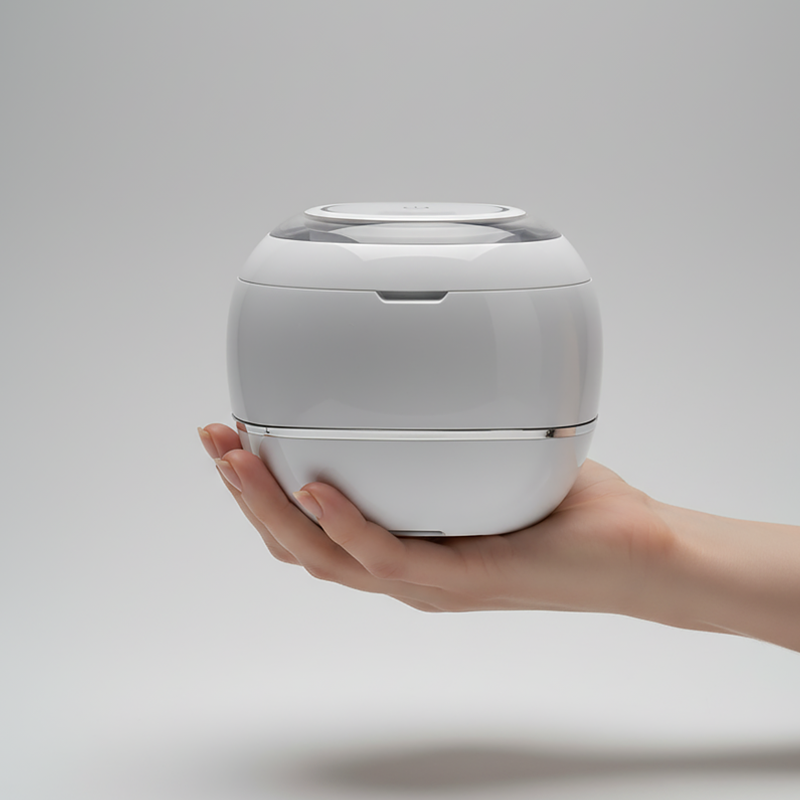Ein Tastendruck genügt, um die Reinigung zu starten. Die kompakte Form passt in jeden Raum und ist leicht überallhin mitzunehmen.