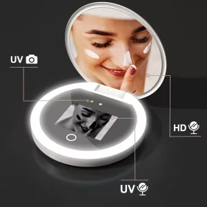 Überprüfen Sie Ihre Hautsicherheit ganz einfach jeden Tag im Freien. Nutzen Sie helles Licht für bestes Make-up oder Sonnenschutz überall. Vermeiden Sie ausgelassene Bereiche, die schnell zu echten Hautproblemen führen können. Das kleine Design passt problemlos in jede Tasche oder Hosentasche.