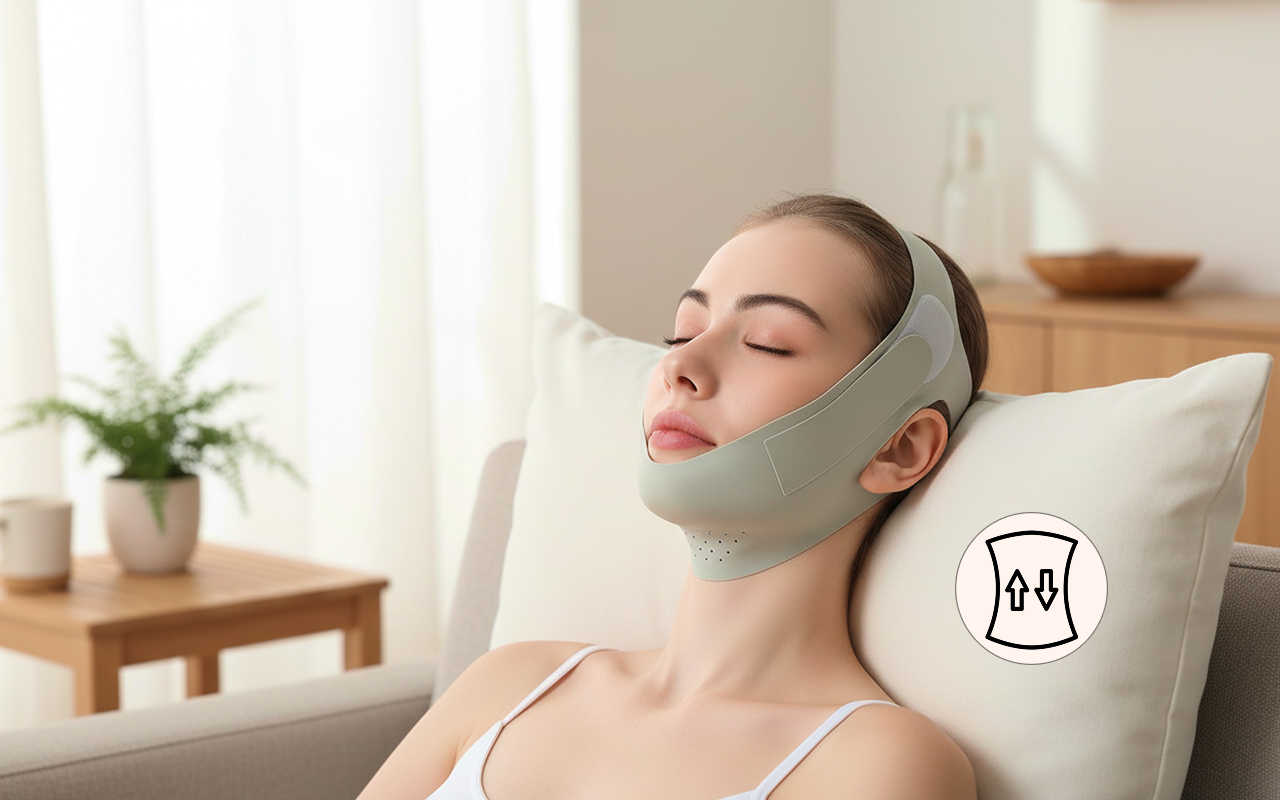Dieses Kinnband nachts zu tragen fühlt sich sanft und leicht an. Ich wache jeden Morgen auf und liebe die Veränderung, die ich in meinem Gesicht sehe.