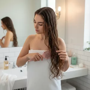 Großartiger Entwirrer! Bürsten dauert jetzt nur ein paar Minuten, selbst wenn meine Haare nach dem Schlafen widerspenstig sind. Meine Wellen sehen gesund und federnd aus.