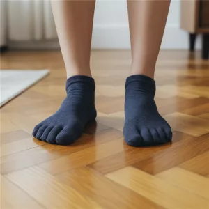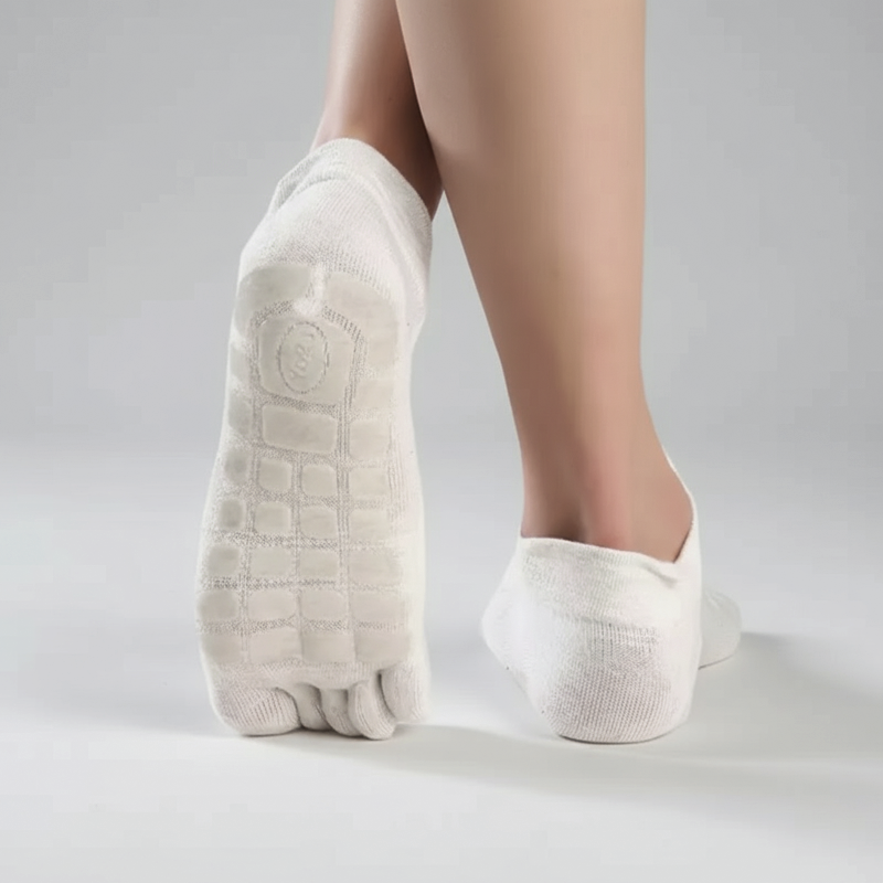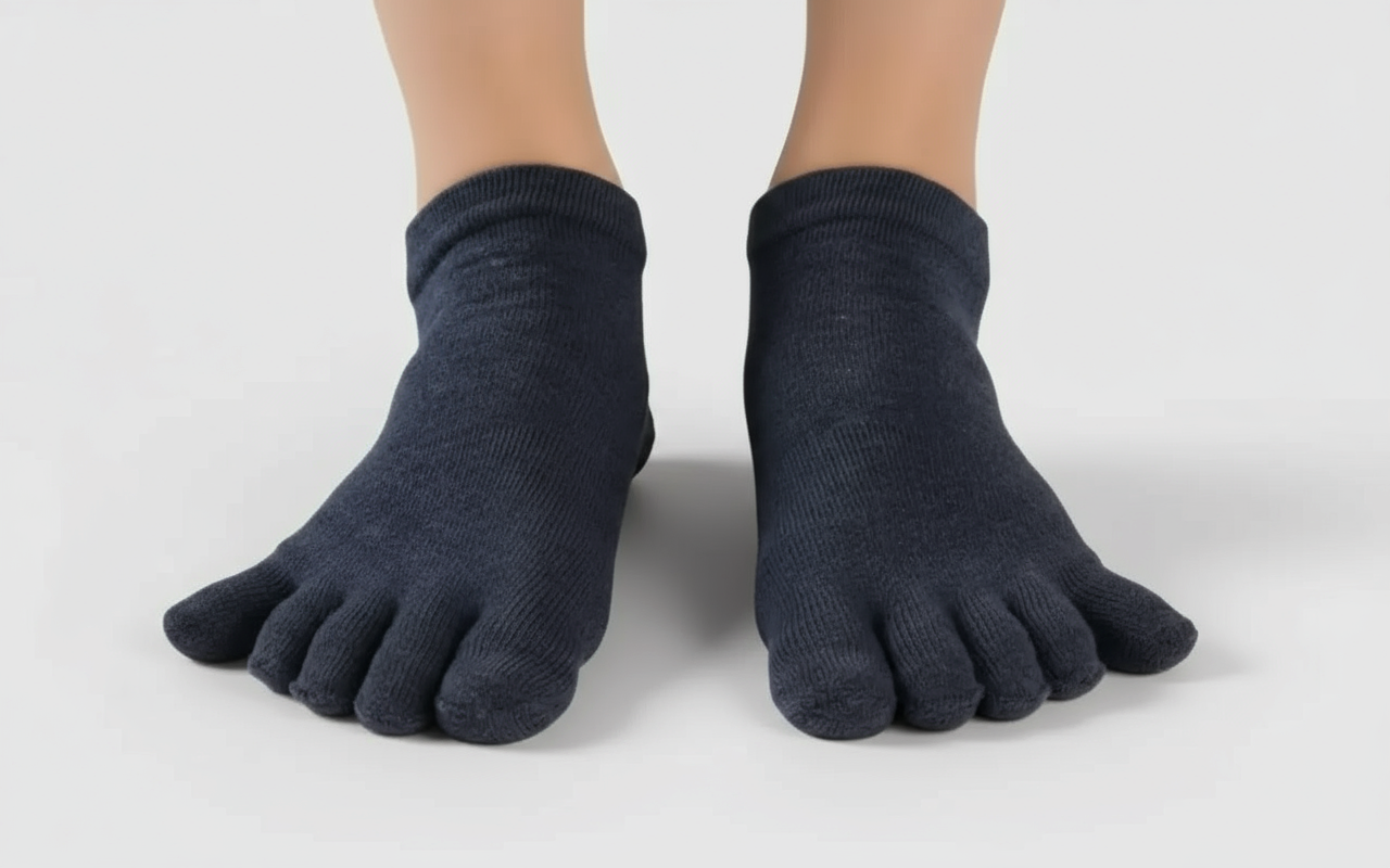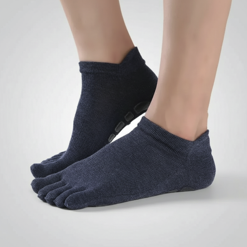 Jeder Zeh bleibt getrennt, sodass Reibung und Irritationen vermieden werden. Dieses Design unterstützt gesunde Bewegung und verhindert Schweißbildung.