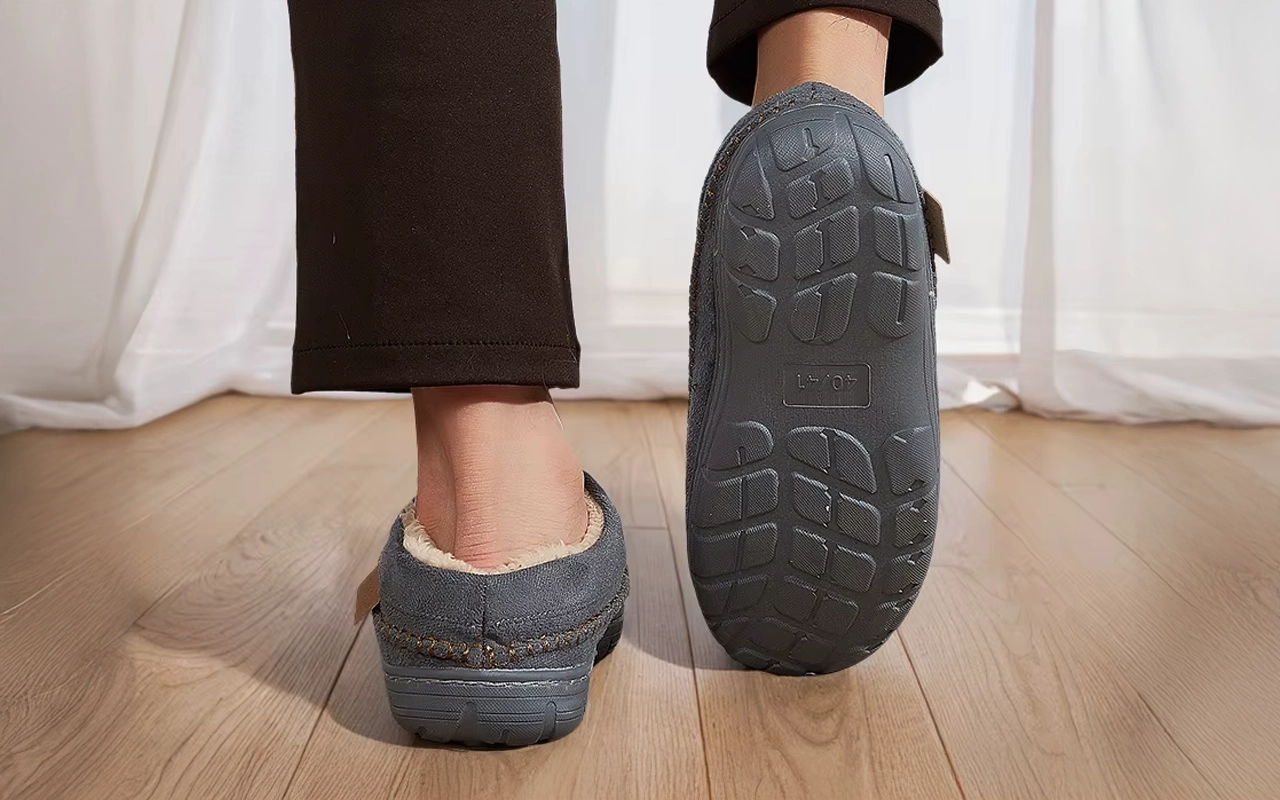 Das Tragen dieser Hausschuhe entspannt meine Füße sofort. Ich mag, dass die Sohlen gut greifen, sodass ich nie auf Holzböden ausrutsche. Sie sind das ganze Jahr über super.