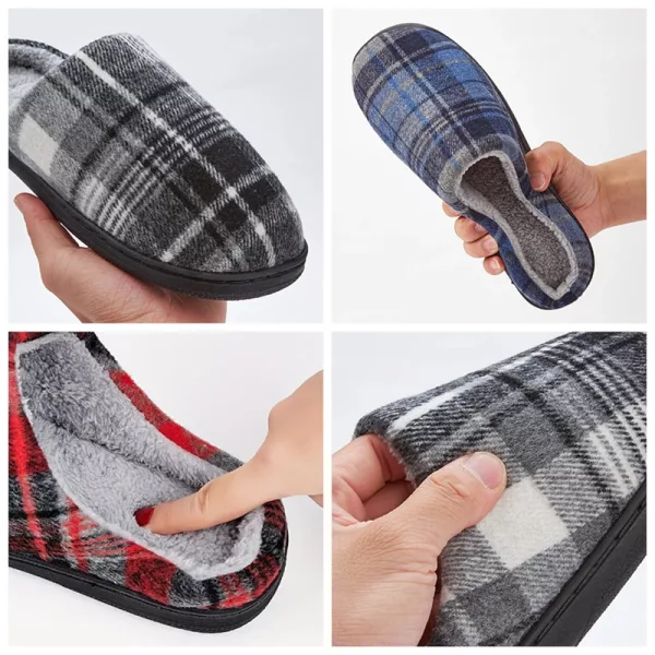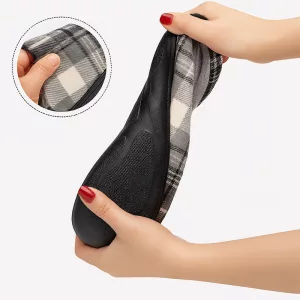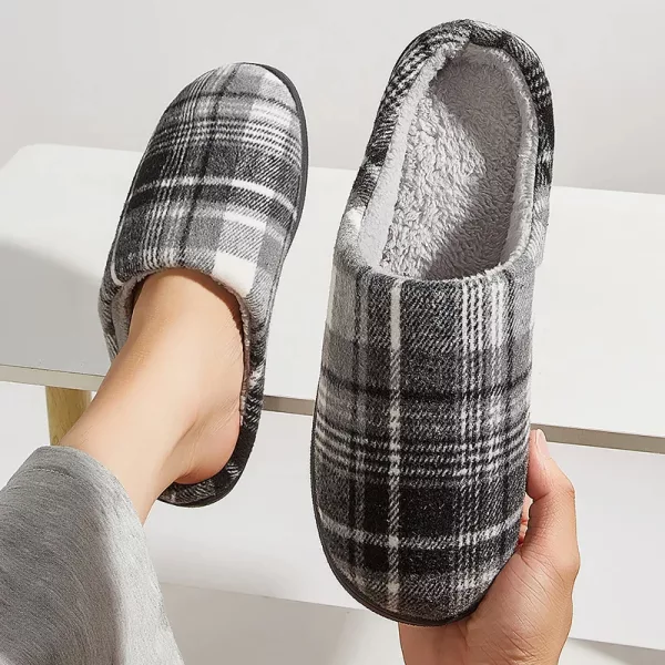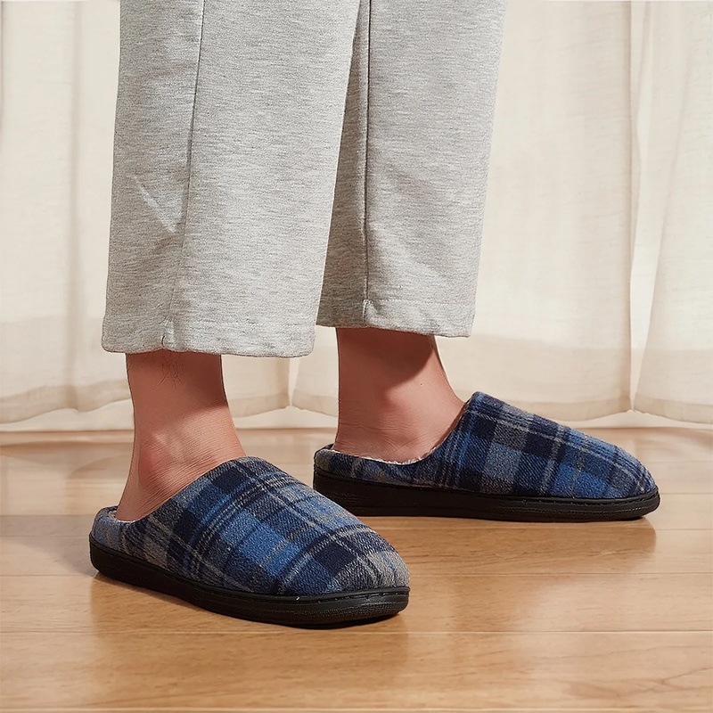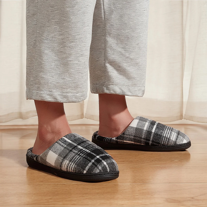 Diese karierten Hausschuhe nach der Arbeit zu tragen, ist das Beste. Innen weich, super einfach anzuziehen und meine Fersen fühlen sich jetzt total entspannt an.