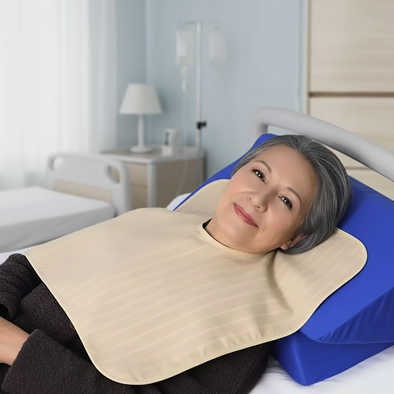 Ich benutze es jeden Tag für meinen Vater und finde es super einfach, ihm das Lätzchen anzulegen. Er beschwert sich nicht, weil es sanft zu seiner Haut ist.