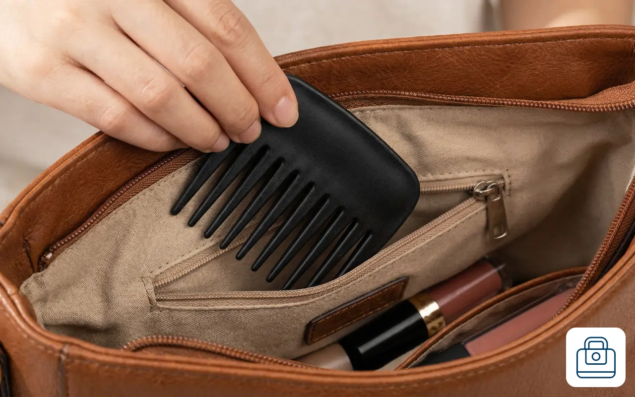 So eine schöne Sache für unterwegs. Ich benutze den kleinen Kamm nach dem Fitnessstudio und meine Haare bleiben immer ordentlich, egal wo ich bin. Ich liebe es, wie er Frizz verhindert, selbst bei trockenem Wetter.