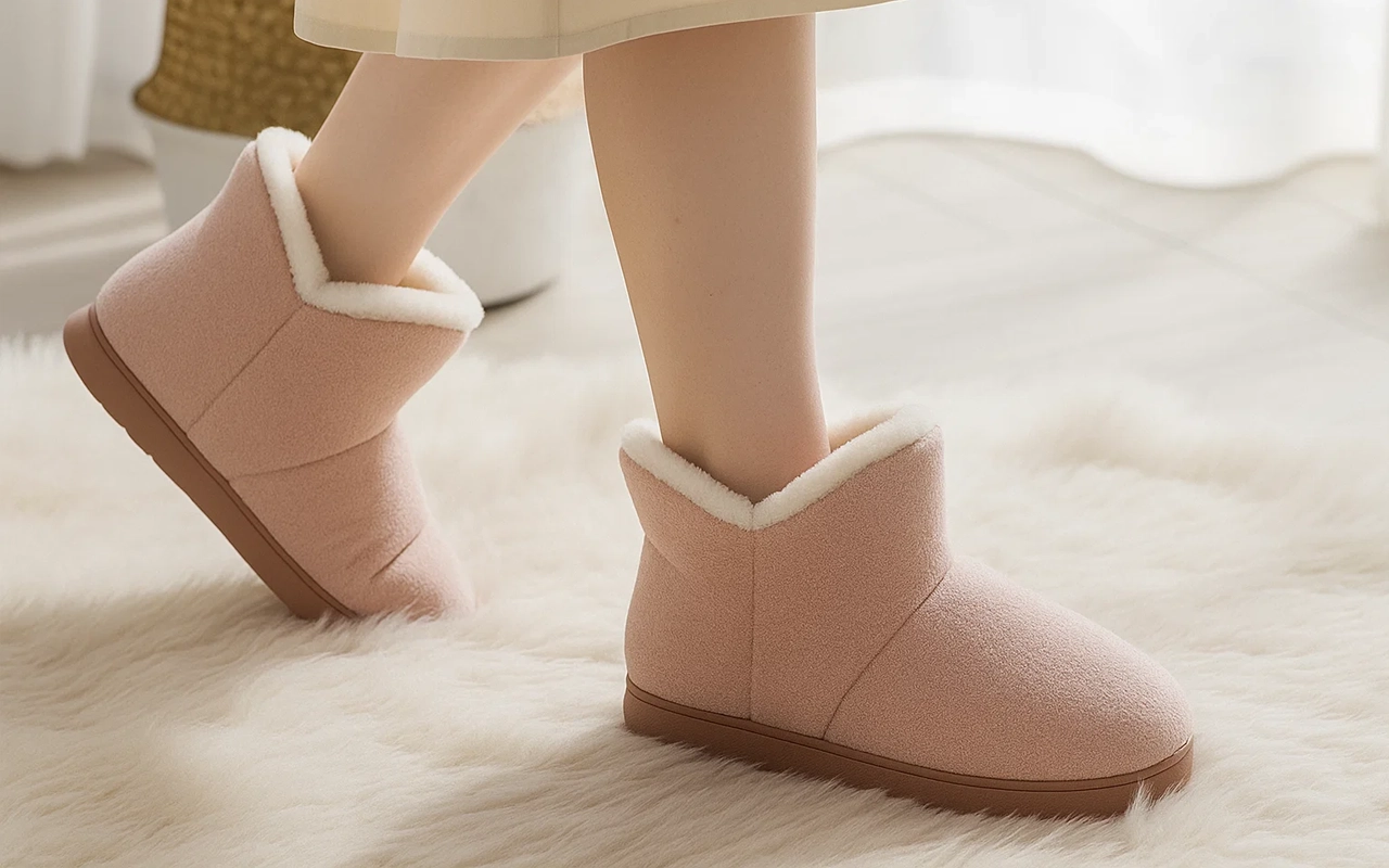 Isolierendes Plüsch hält die Wärme bei jedem Schritt eingeschlossen. Keine kalten Zehen mehr, wenn die Temperaturen im Haus sinken.