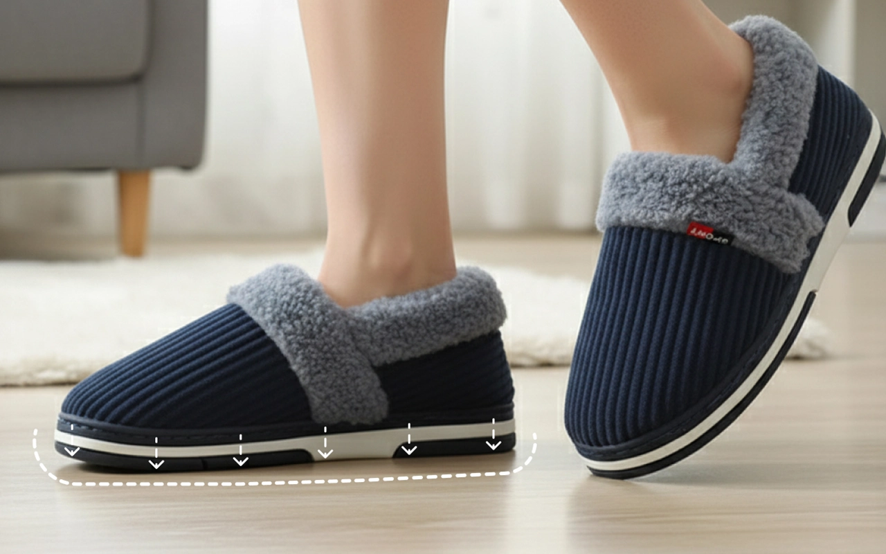 Meine Füße werden sehr schnell kalt, aber diese warmen Pantoffeln lösen das. Die Polsterung ist super, wenn ich beim Frühstückmachen stehe. Die Sohle hat einen guten Halt.