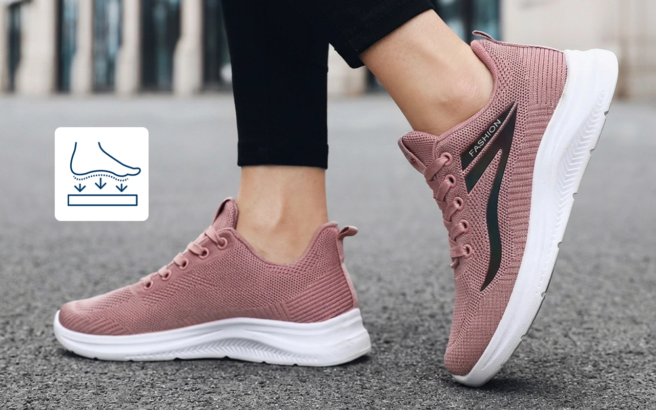 Ausgewogene Sohlen reduzieren die Ermüdung nach stundenlangem Stehen. Jeder Schritt fühlt sich stabil und vor Belastungen geschützt an.