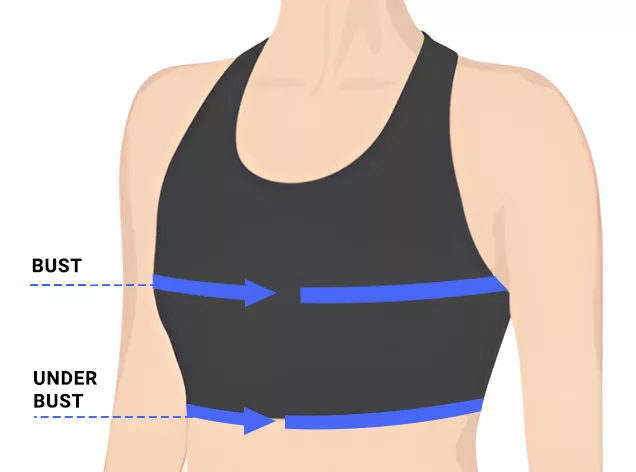 - 2. Um den Unterbrustumfang zu ermitteln, legen Sie das Maßband direkt und gleichmäßig unterhalb Ihrer Brust um den Brustkorb.