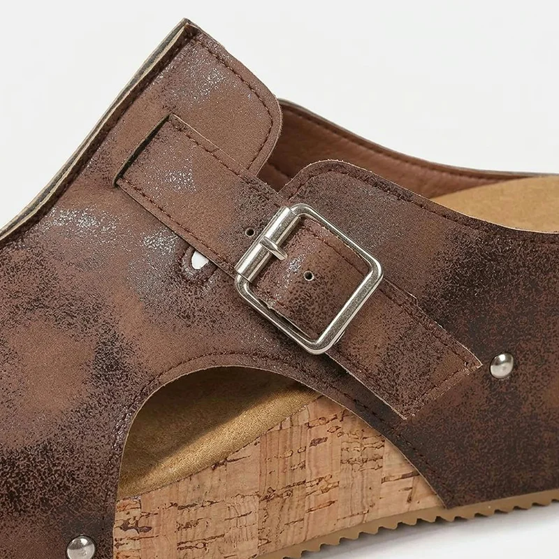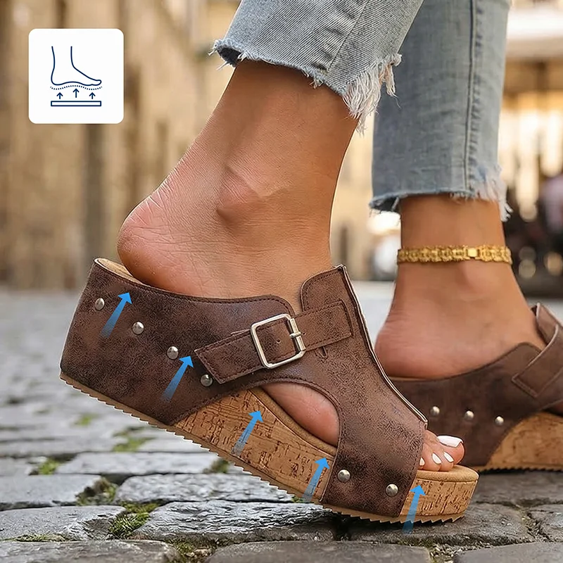 Weiche Polsterung absorbiert den Druck und sorgt für sanfte Entlastung. Jeder Schritt fühlt sich geschmeidig an, wenn Sie diese Keilsandalen tragen.