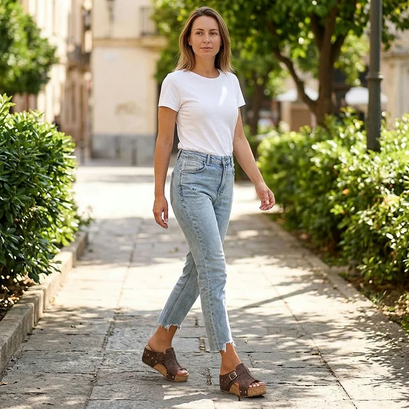 Diese Slip‑on‑Sandalen fühlen sich an, als würde man auf kleinen Kissen laufen. Ich kann zur Tür hinaushetzen, sehe trotzdem gepflegt aus und bleibe selbst bei langen Lebensmitteleinkäufen entspannt.