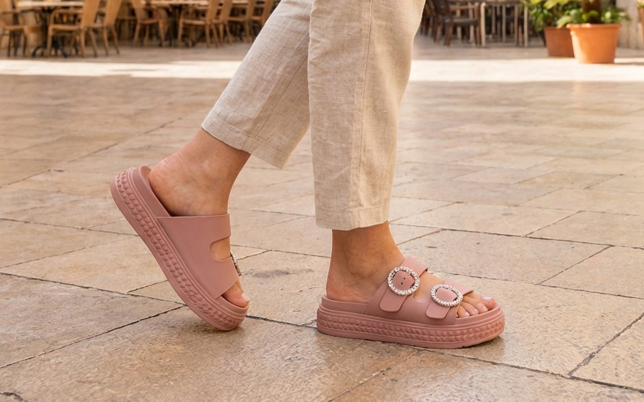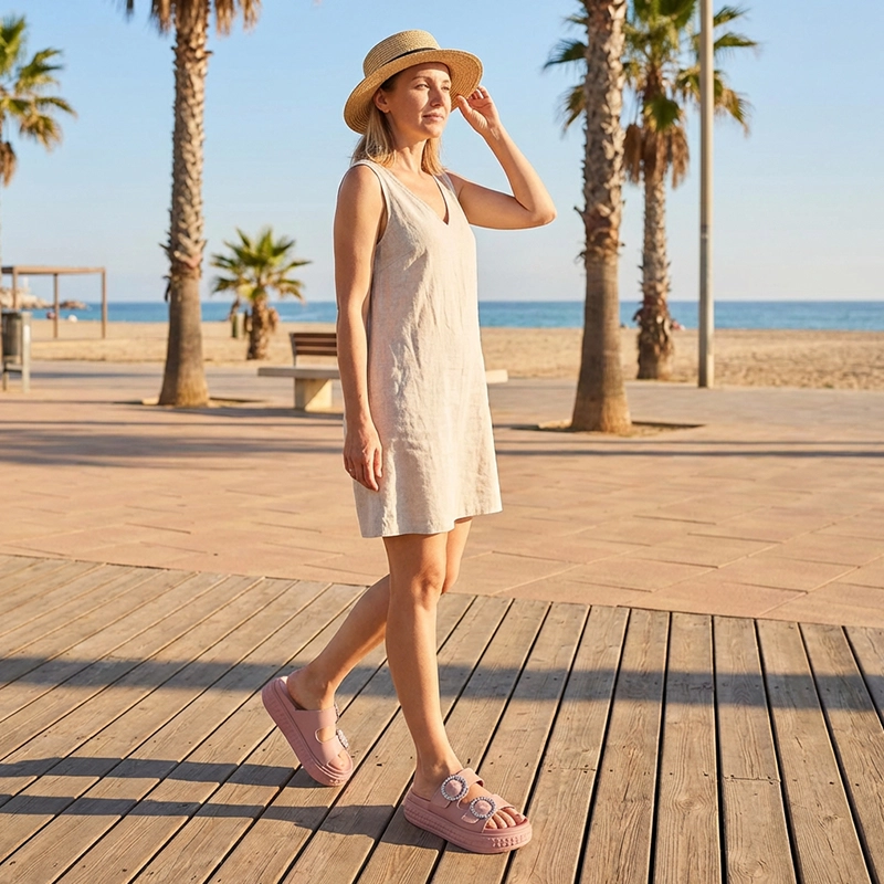 Schlüpfen Sie an jedem warmen Tag draußen mühelos in völlige Entlastung. Jedes Paar hält Ihre Füße von morgendlichen Spaziergängen bis zum abendlichen Vergnügen glücklich. Keine müden Fußgewölbe oder einengende Zehen mehr. Genießen Sie Urlaubsreisen, Einkaufstouren und Spaziergänge im Garten ohne Schmerzen.