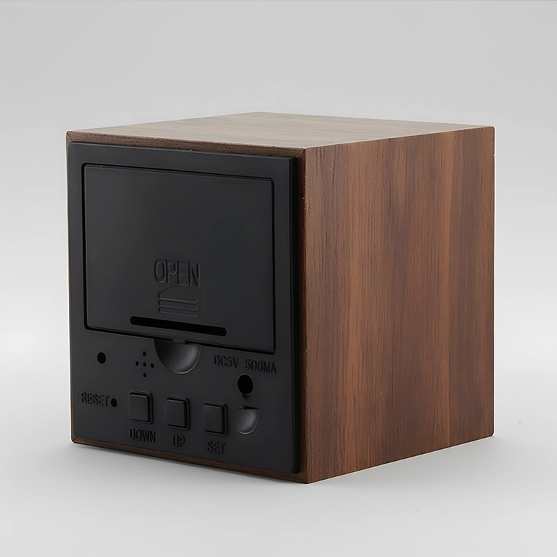 Ich brauche mein Handy nicht mehr für Wecker. Der Holzwürfel ist zuverlässig und hält meinen Bereich ordentlich. Wirklich einfach einzurichten.