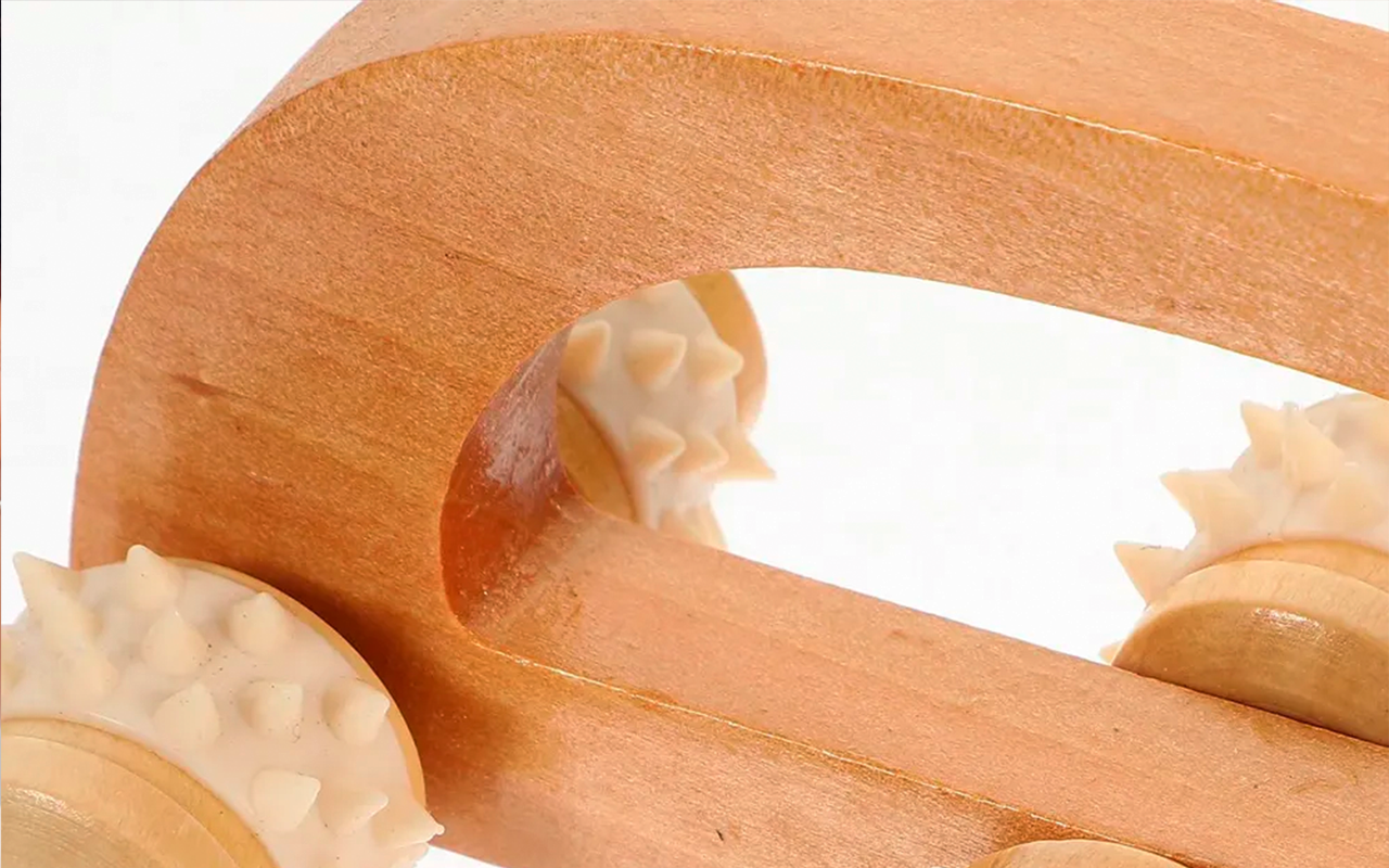 Umweltfreundliche Holzkonstruktion bedeutet, dass keine harten Kunststoffe die Haut berühren. Sanfte Silikonspitzen lassen jede Sitzung entspannend und sicher erscheinen.