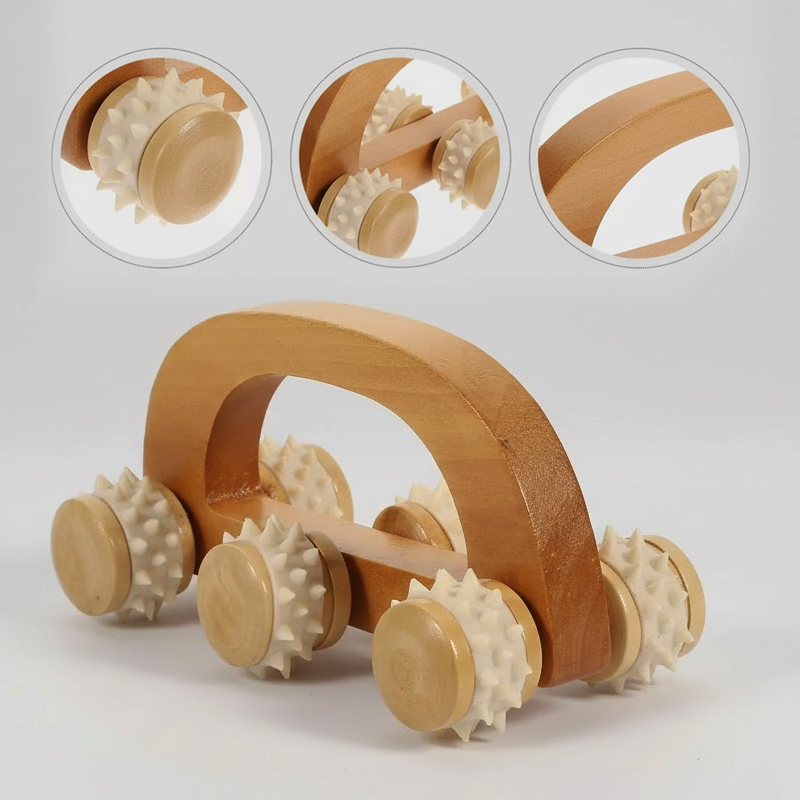 Umweltfreundliche Holzkonstruktion bedeutet, dass keine harten Kunststoffe die Haut berühren. Sanfte Silikonspitzen lassen jede Sitzung entspannend und sicher erscheinen.
